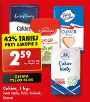 W Biedronce od dziś do niedzieli promocja na cukier biały 1 kg za 1,95 zł przy zakupie 10 sztuk z kartą Moja Biedronka. Limit wynosi 20 szt na kartę.