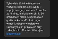W Biedronce od poniedziałku 5.08 do środy 7.08 trwa promocja na piwa 6+6 gratis. Promocje są w zasadzie 2. Jedna dotyczy piw Carlsberg 500 ml 6 i 6 gratis.