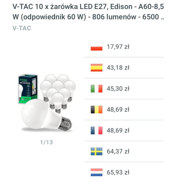 o 10x żarówka LED E27 Edison - A60-8,5 W (odpowiednik 60 W) - 806 lumenów - 6500 K świeża biel - błąd cenowy