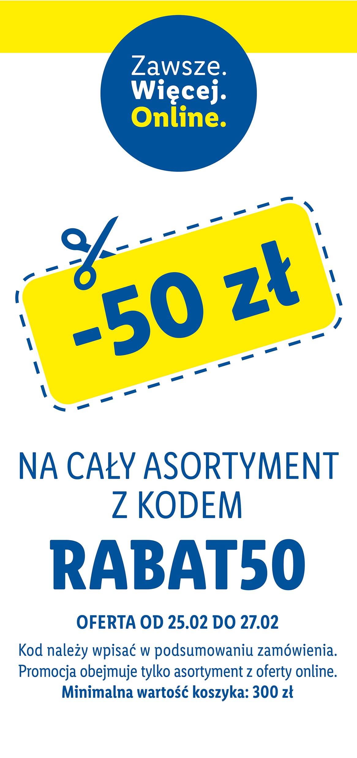 o -50zł na cały asortyment przy zakupie za minimum 300zł w Lidl.pl