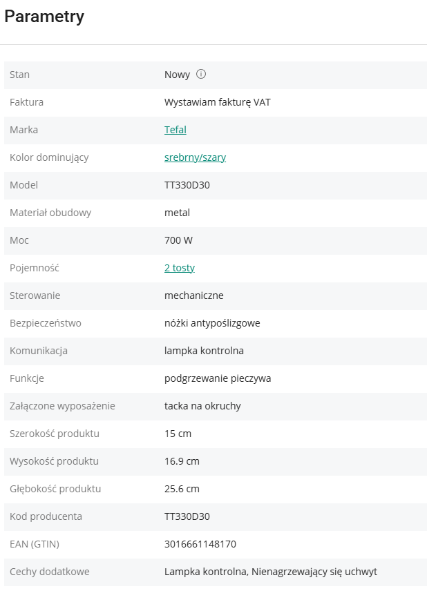 Ten toster to prosty i solidny sprzęt do codziennych śniadań. Ma 700 W mocy i dwa szerokie otwory, a dzięki 6-stopniowej regulacji zrobisz grzanki dokładnie tak, jak lubisz. Bardzo przydaje się funkcja wysokiego podnoszenia (nie parzysz palców!) i przycisk stop, jeśli chcesz przerwać opiekanie wcześniej. Do tego ma wyjmowaną tackę, więc łatwo wysypiesz okruchy i zachowasz porządek.