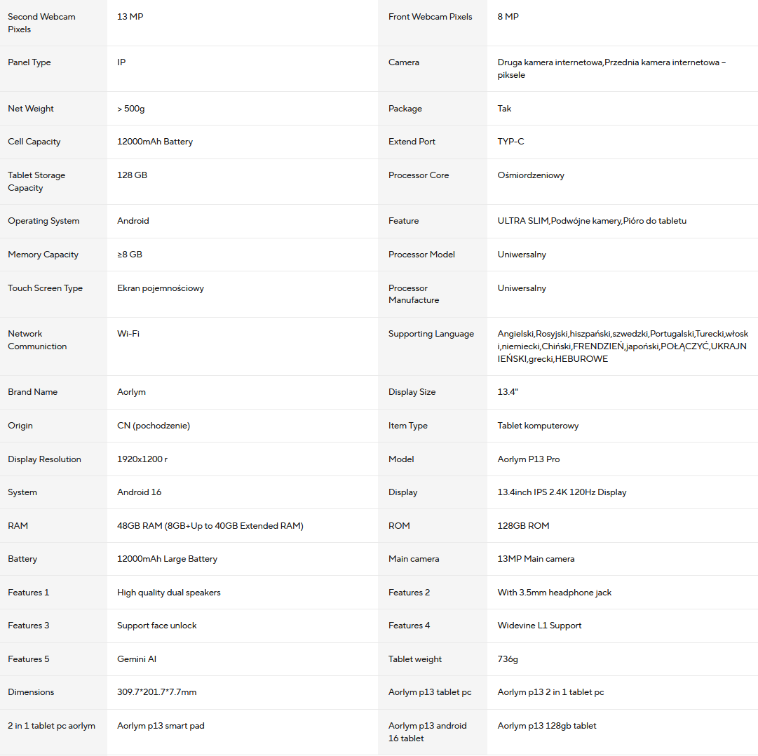 o Aorlym P13 Android 16 2 w 1 Tablet PC 13,4 cala Aliexpress