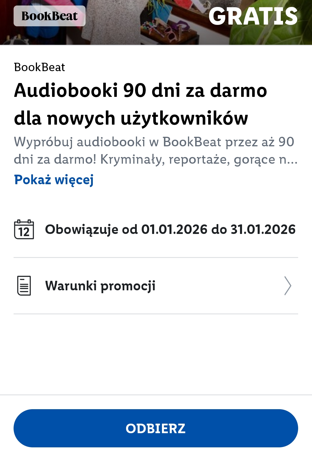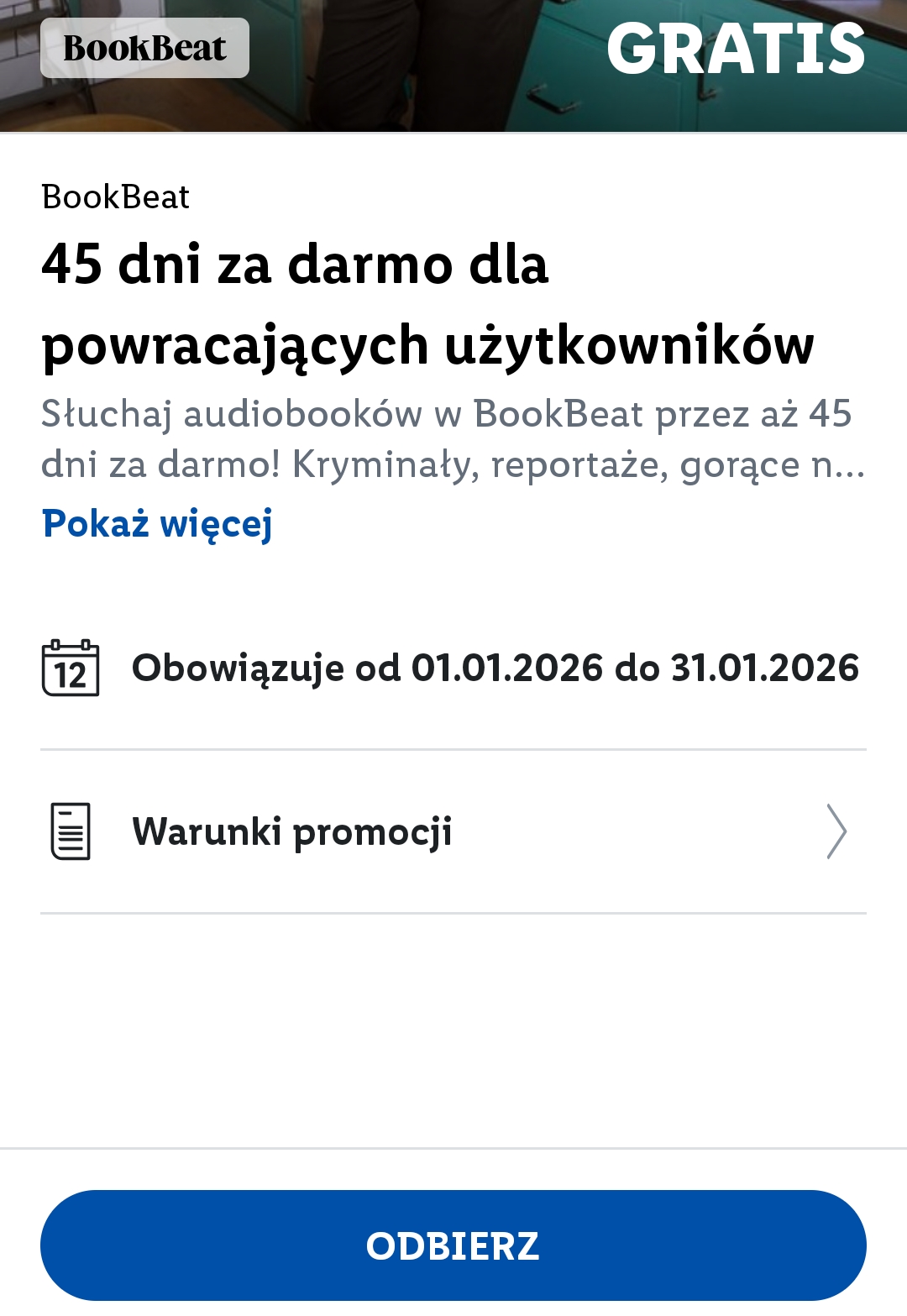 W aplikacji LIDL. W zakładce kupony są dwie nowe oferty dla osób które korzystają z bookbeat