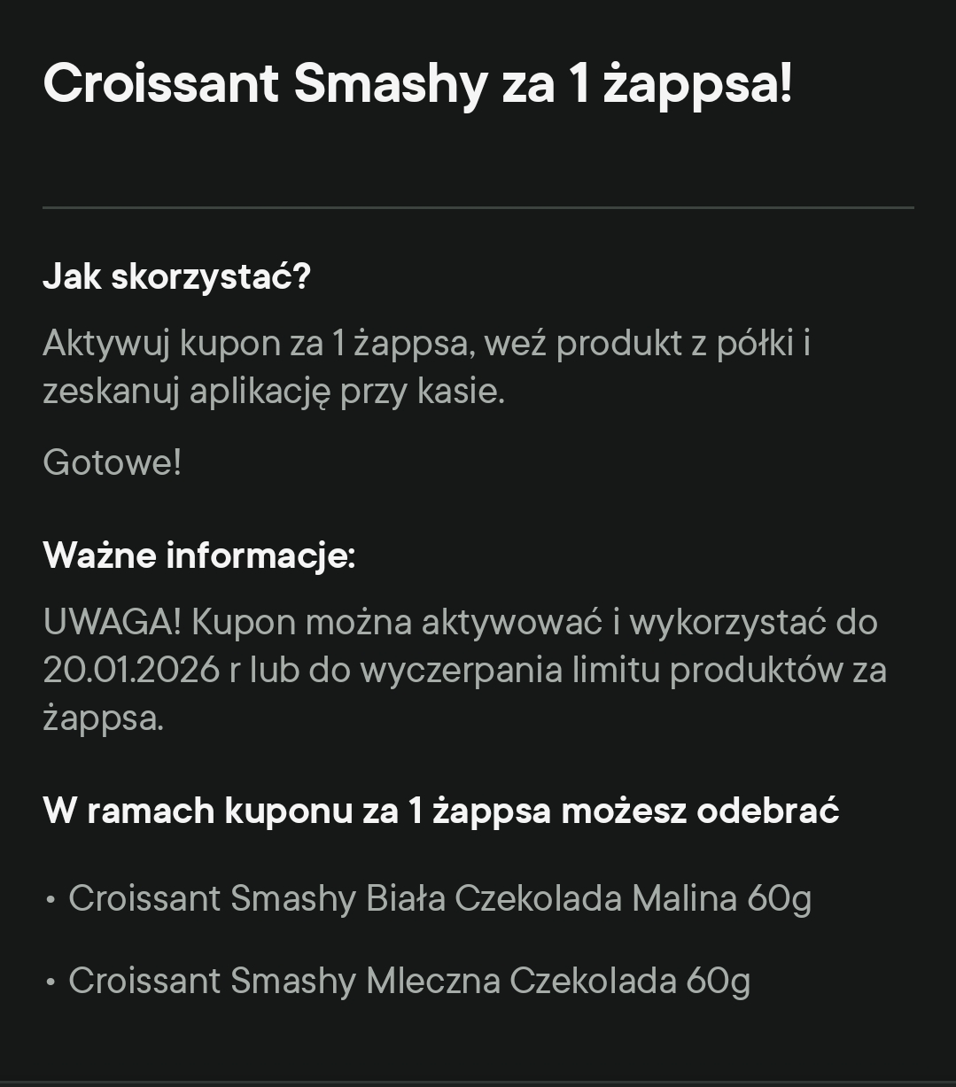 o Croissant Smashy za 1 żappsa. Kupon do aktywacji w aplikacji