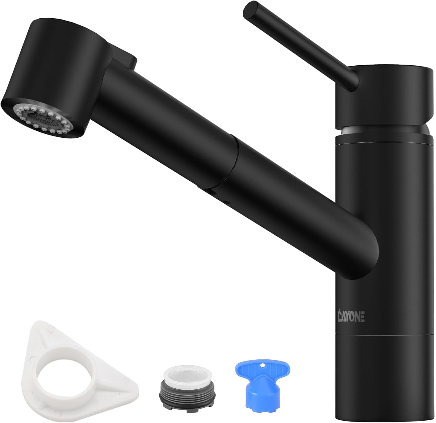 o Czarny kran kuchenny, DAYONE Wysuwany kran kuchenny wysokociśnieniowy, obracany o 360°