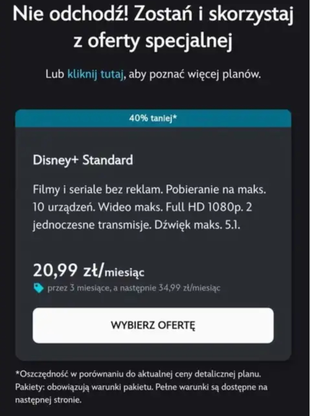 Oferta kończy się 06/05/2026. Tylko nowi i spełniający warunki powracający subskrybenci. Muszą mieć ukończone 18 lat. Wcześniej Standard 34,99 zł; Premium 34,99 zł (w ramach limitowanej oferty ulepszenia). Po 3 miesiącach następuje automatyczne odnowienie w obowiązującej wówczas miesięcznej cenie wybranego planu (Standard 34,99 zł; Premium 59,99 zł), o ile nie anulujesz wcześniej.