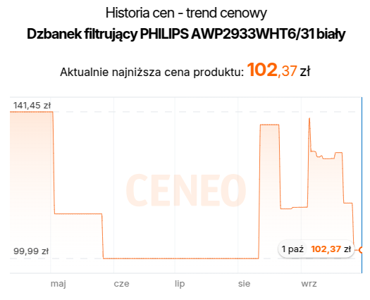 o Dzbanek filtrujący PHILIPS AWP2933WHT6/31 biały oraz 3 Wymienne Wkłady Filtrujące Micro X-Clean z elektronicznym timerem