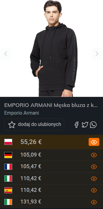 o EMPORIO ARMANI Męska bluza z kapturem frotte, czarna, rozmiar M błąd cenowy?