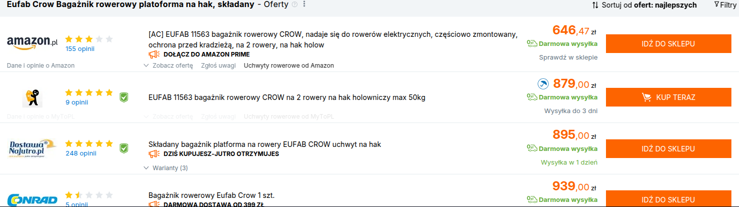 Filtrowanie okazji