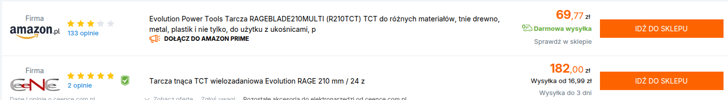 o Evolution Power Tools Tarcza RAGEBLADE210MULTI (R210TCT) TCT do różnych materiałów, tnie drewno, metal, plastik i nie tylko 210 mm