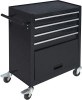 Wyposażony w duży blat roboczy ze stali z gumową matą, szeroki uchwyt do noszenia, 4 szuflady o wysokości 60 mm z systemem na łożyskach kulkowych i dużą skrzynię z drzwiami uchylnymi