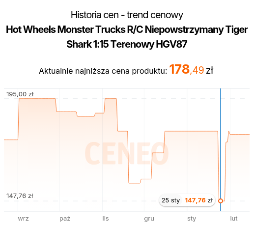 o Hot Wheels Monster Trucks R/C Niepowstrzymany Tiger Shark 1:15 Terenowy HGV87
