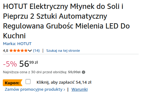 HOTUT Elektryczny Młynek do Soli i Pieprzu 2 Sztuki - 10%