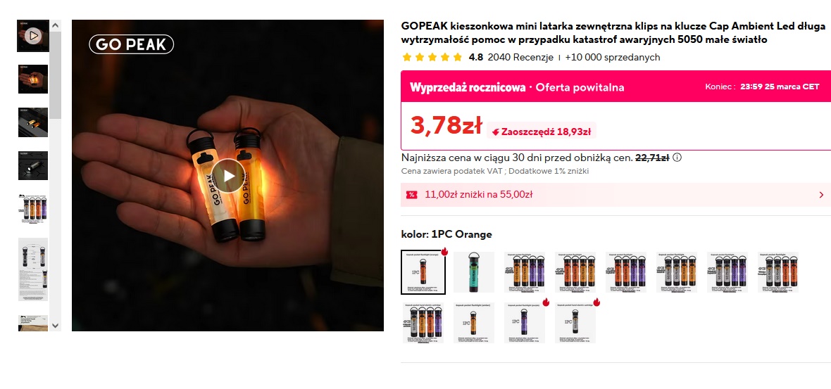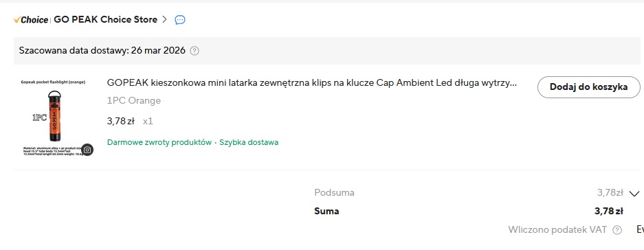 Nazwa produktu: Kieszonkowa latarka GO PEAK