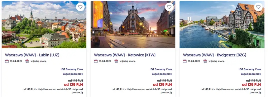 Na odcinku Warszawa - Lublin, Warszawa - Katowice i Warszawa - Bydgoszcz zapłacimy 129 PLN w jedną stronę (na relację odwrotną też powinno działać).