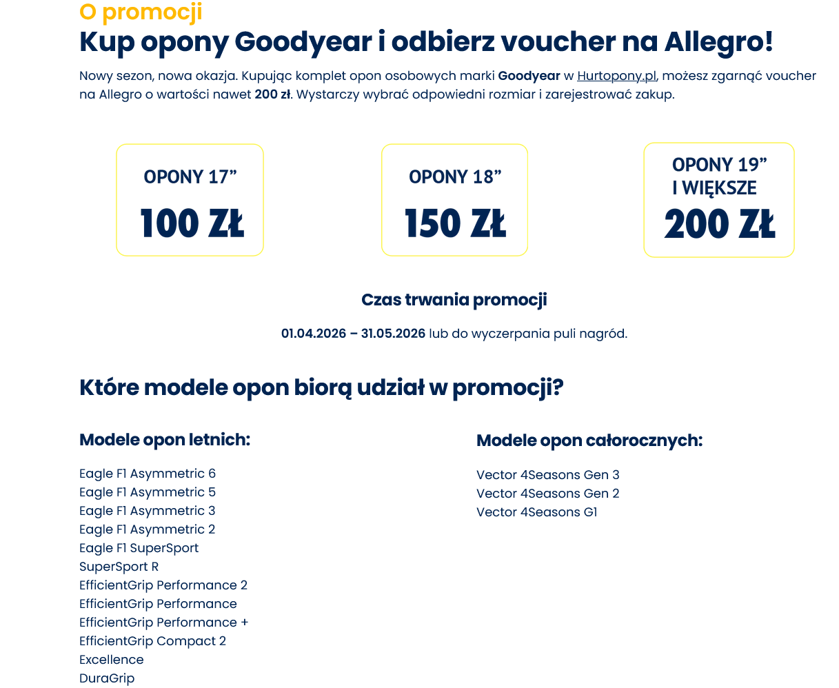 o Kup opony GoodYear i odbierz voucher na Allegro (do 200 PLN)