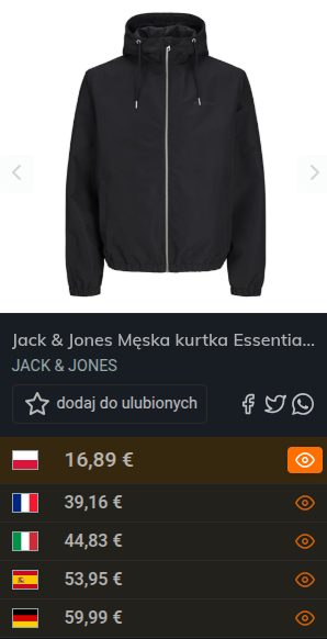 o Kurtka męska JACK & JONES XL błąd cenowy