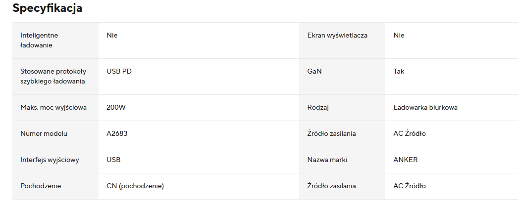 o Ładowarka Anker Prime,200 W 6 portów, GaN