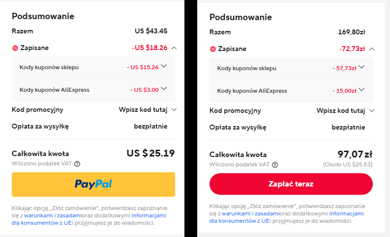 Do zapłaty $25.19 (~93zł) lub 97,07zł