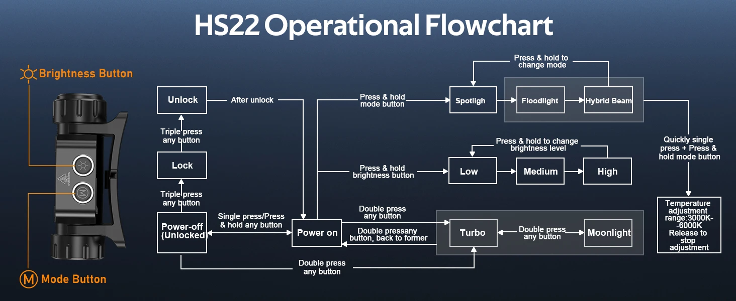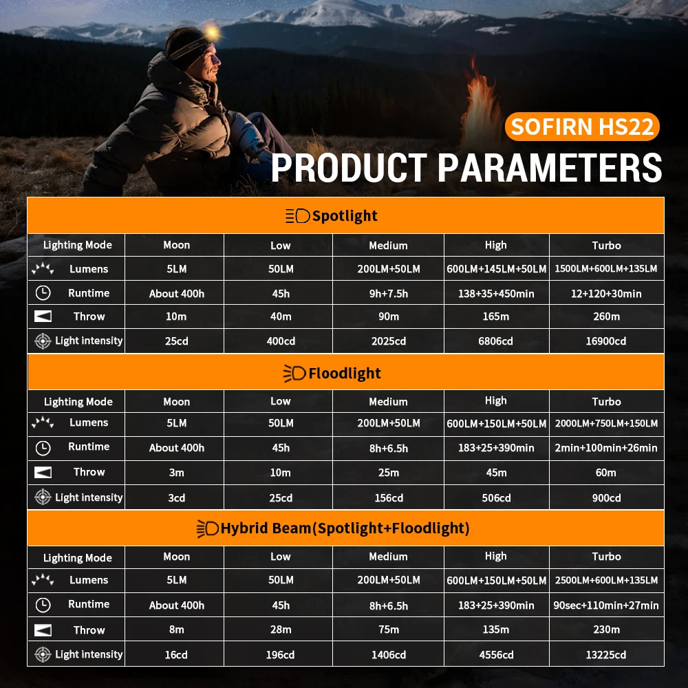 Jest to pierwsza latarka czołowa Sofirna z płynną regulacją temperatury barwy w zakresie 2700-6500K.