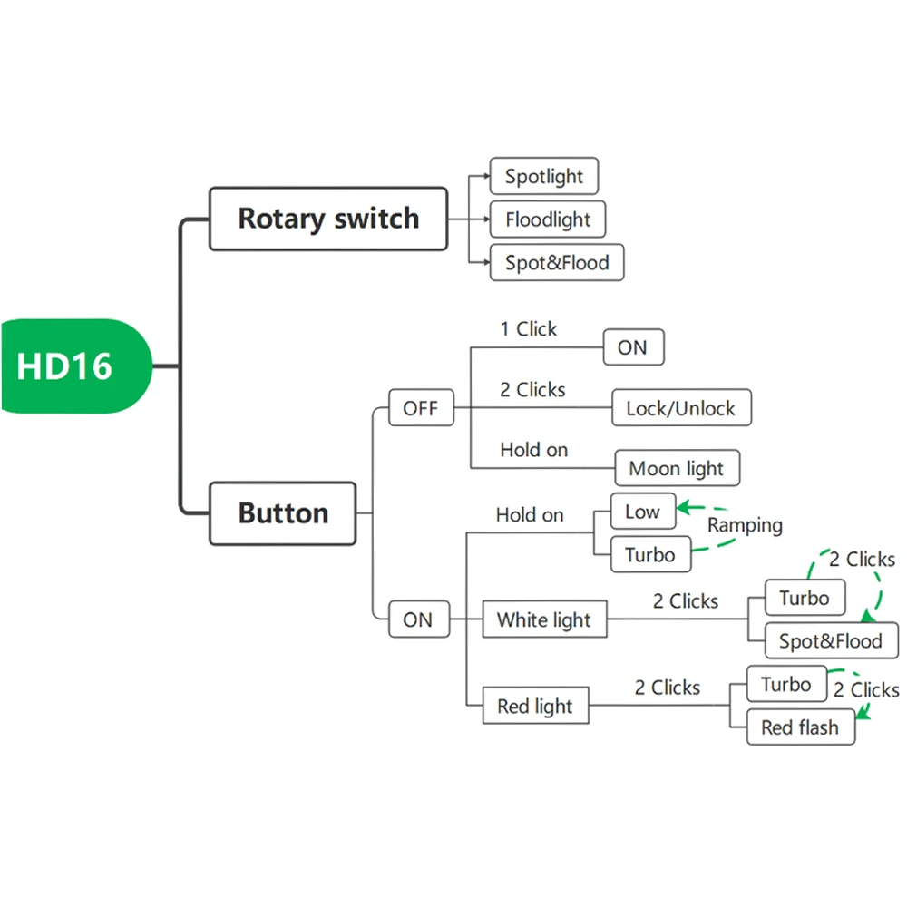 Latarka emituje światło do 2500 lumen i posiada 4 tryby pracy - spotlight, floodlight, spot + flood oraz red light.