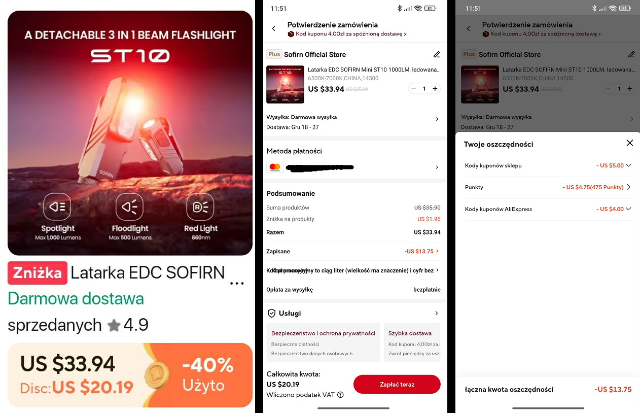 Najnowsza latarka na klips Sofirn ST10 ponownie w promocji.