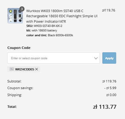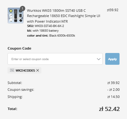 update zmiana kodu na “WKZHCODE5” . okazja jest jeszcze lepsza dziś bo wychodzi 37 ,92zł (52.42zł z wysyłką) przy zakupie jednej. Albo 113.77zł za trzy i darmowa wysyłka.