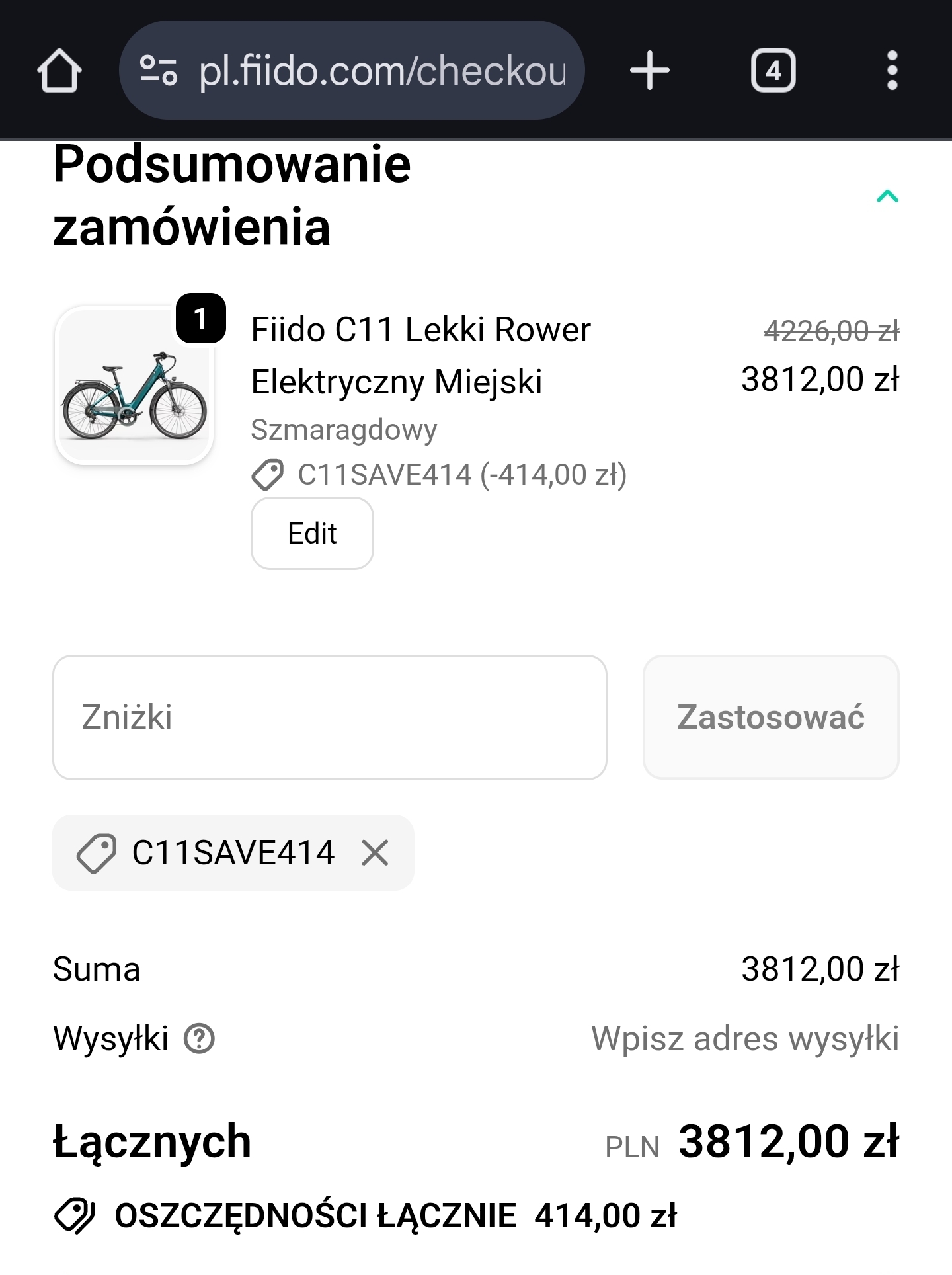 Cena po użyciu kodu, darmowa wysyłka