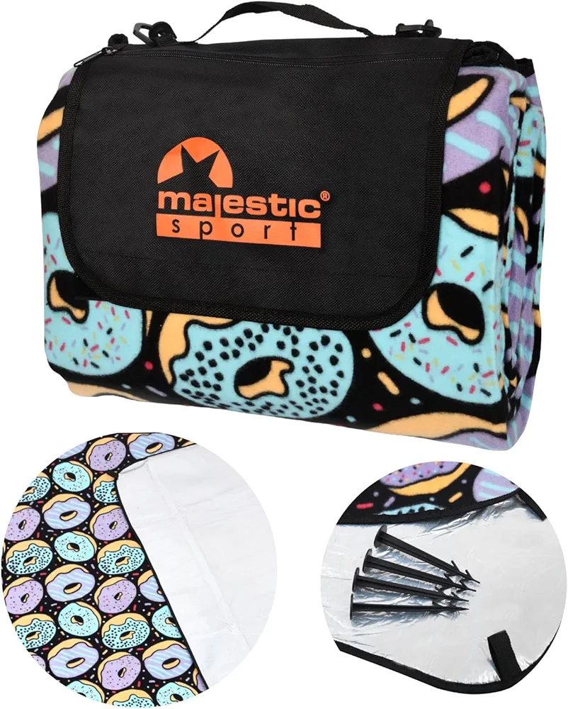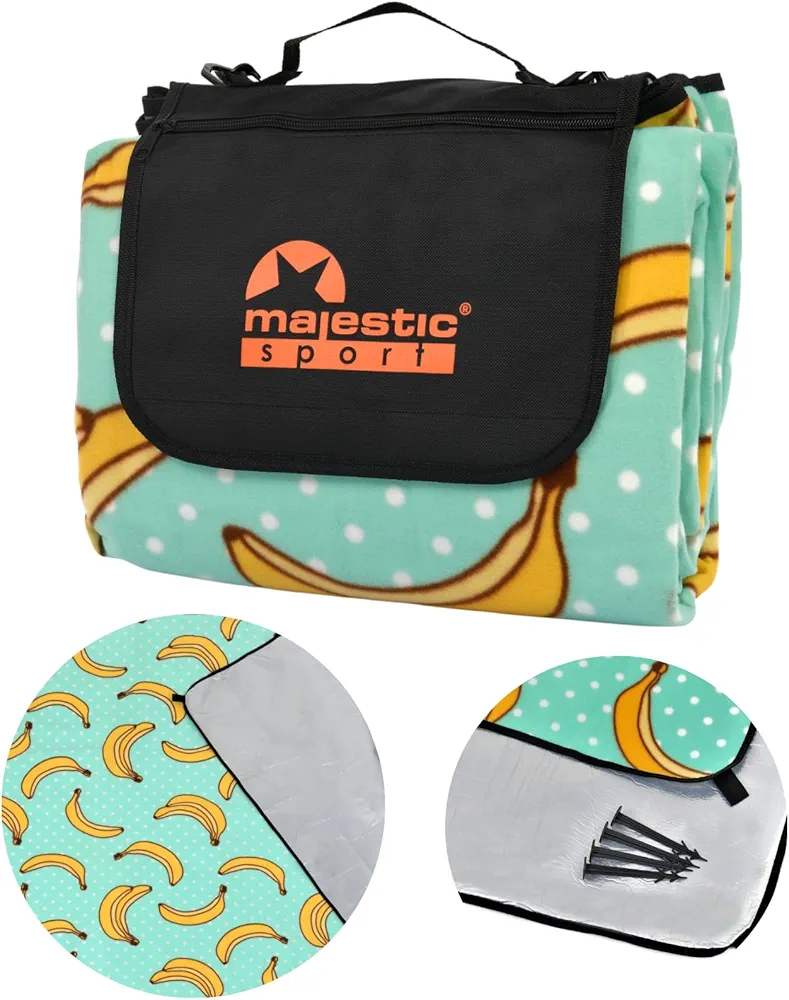 Koc Majestic Sport został wykonany z miękkiego i przyjemnego w dotyku polaru. Materiał ten jest trwały oraz łatwy w czyszczeniu. Spód koca pokrywa warstwa aluminium, dzięki czemu mata posiada doskonałe właściwości izolacyjne przed chłodem i wilgocią.