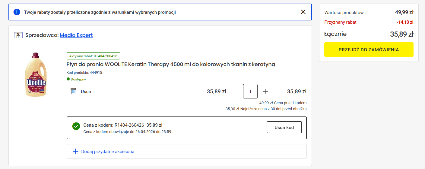 Kod rabatowy: R1404-260426, można aktywować do dnia 26.04.2026 do 23:59. I pyk masz 35,89 złotych.