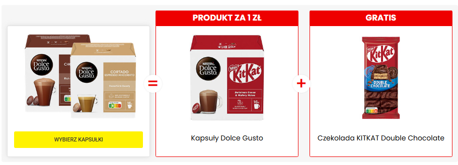 Dokończ zakup i zyskaj najtańszy produkt za 1 zł oraz czekoladę gratis.