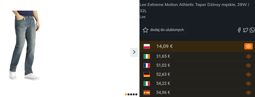 o Męskie jeansy Lee Extreme Motion Athletic 29W / 32L błąd cenowy