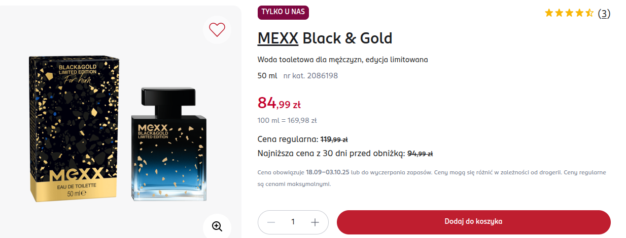o MEXX Black & Gold Woda toaletowa dla mężczyzn, edycja limitowana 50 ml