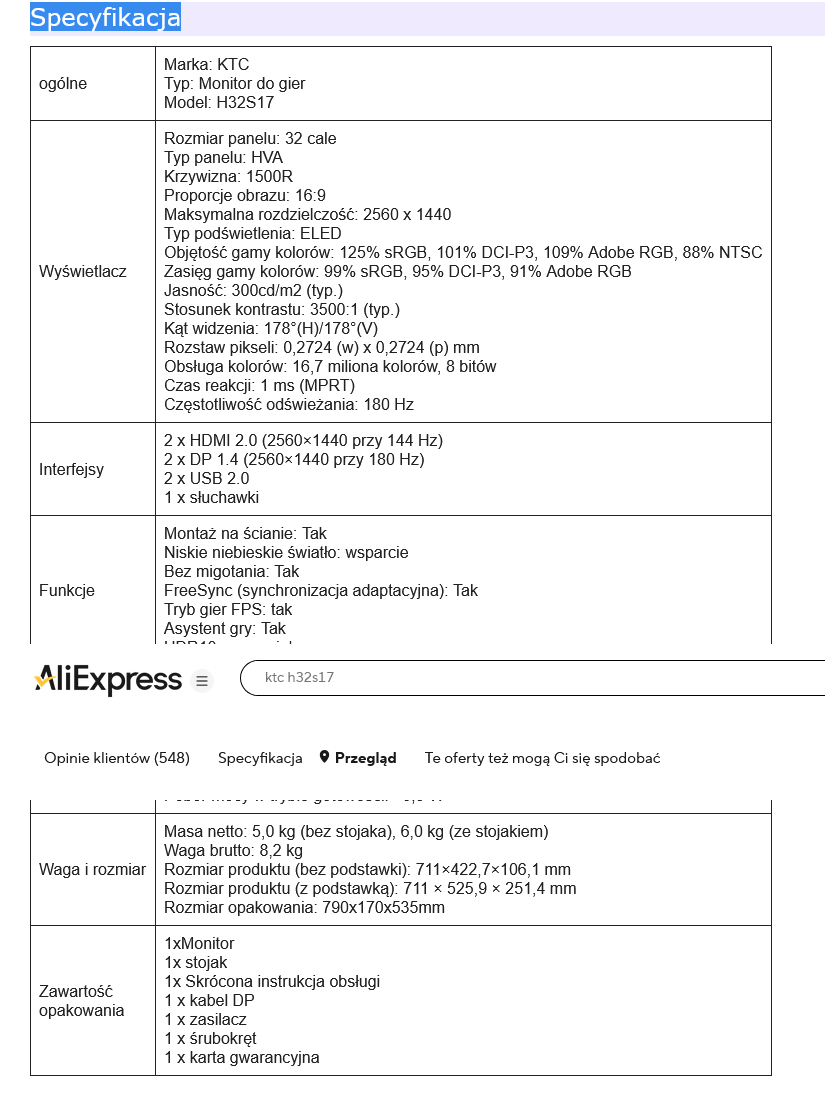 1, panel HVA i odświeżanie płynu 180 Hz;