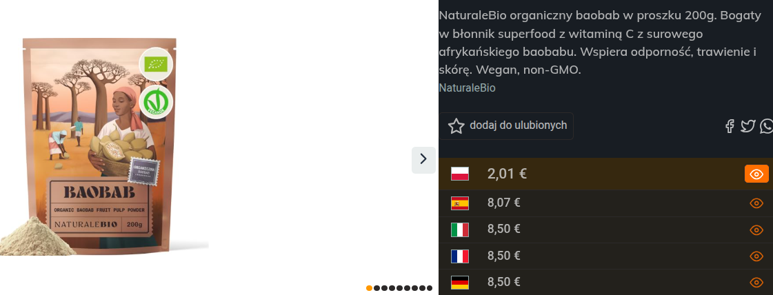 o NaturaleBio organiczny baobab w proszku 200g bogaty w błonnik superfood z witaminą C - błąd cenowy