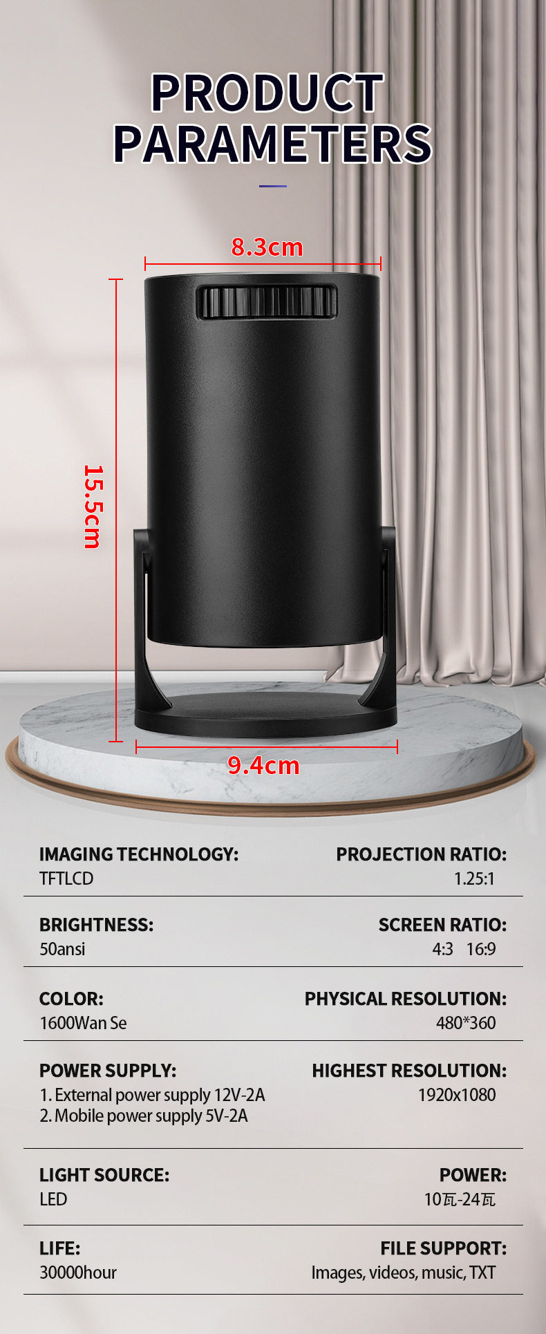 o Przenośny projektor HY300 mini