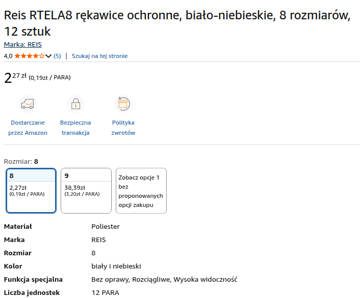 o Reis RTELA8 rękawice ochronne, biało-niebieskie - rozmiar 8 - 12 sztuk - błąd cenowy