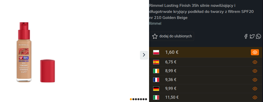 o Rimmel Lasting Finish 35h silnie nawilżający i długotrwale kryjący podkład do twarzy z filtrem SPF20 nr 210 Golden Beige - błąd cenowy