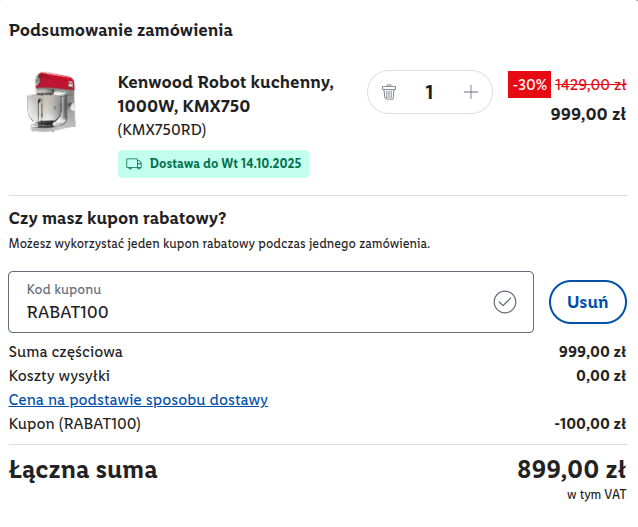 Całkiem spoko rabat w sklepie internetowym Lidla na robota kuchennego Kenwood KMX750RD