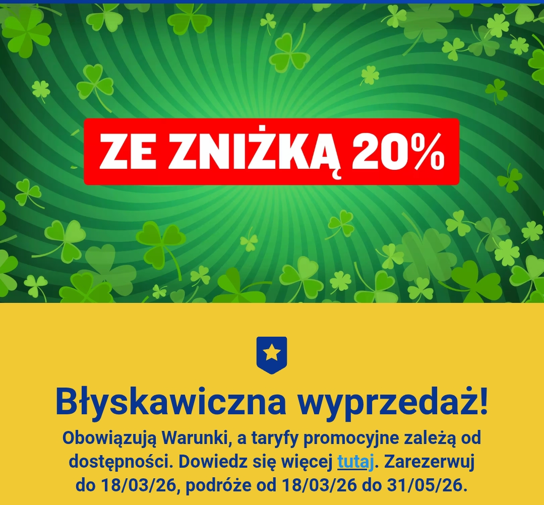 o RYANAIR - błyskawiczna wyprzedaż -20% na loty!