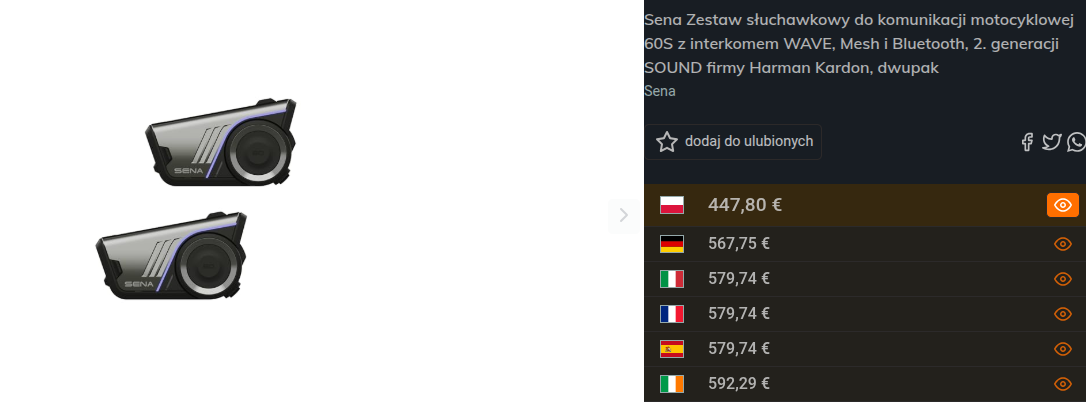 o Sena Zestaw słuchawkowy do komunikacji motocyklowej 60S z interkomem WAVE, Mesh i Bluetooth, 2. generacji SOUND firmy Harman Kardon, dwupak