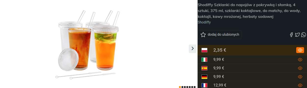 o Shodiffy Szklanki do napojów z pokrywką i słomką - 4 sztuki 375 ml + 2 szczotki do czyszczenia - błąd cenowy