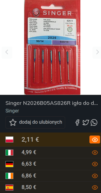 • Igła dżinsowa 2026 Mix 5 sztuk