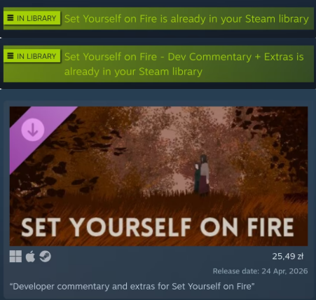 o [Steam] Darmowa gra - Set Yourself on Fire + dodatek ( błąd Steam )