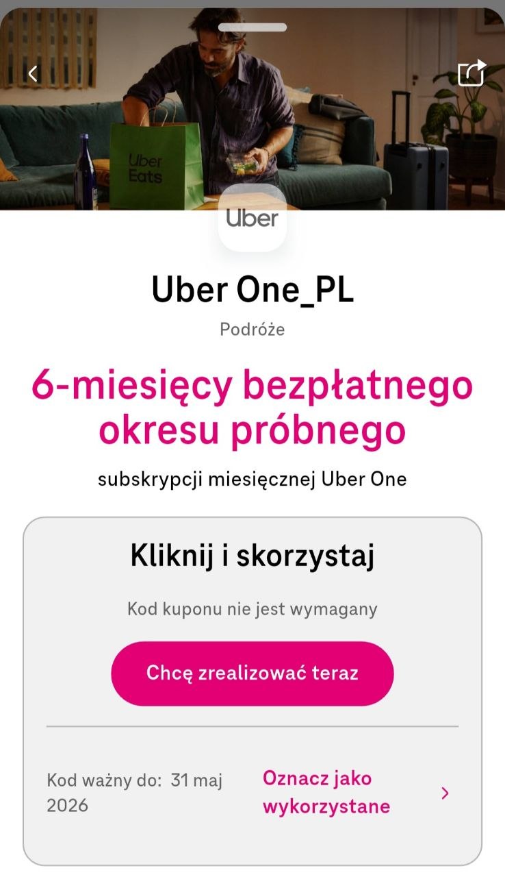 Jeśli nie widzisz oferty „6 miesięcy Uber One za darmo”, wejdź w zakładkę PODRÓŻE - tam ją znajdziesz.