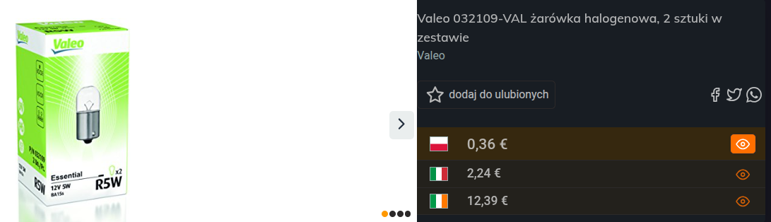 o Żarówka, lampa kierunkowskazu VALEO 032109 - 2 sztuki - błąd cenowy
