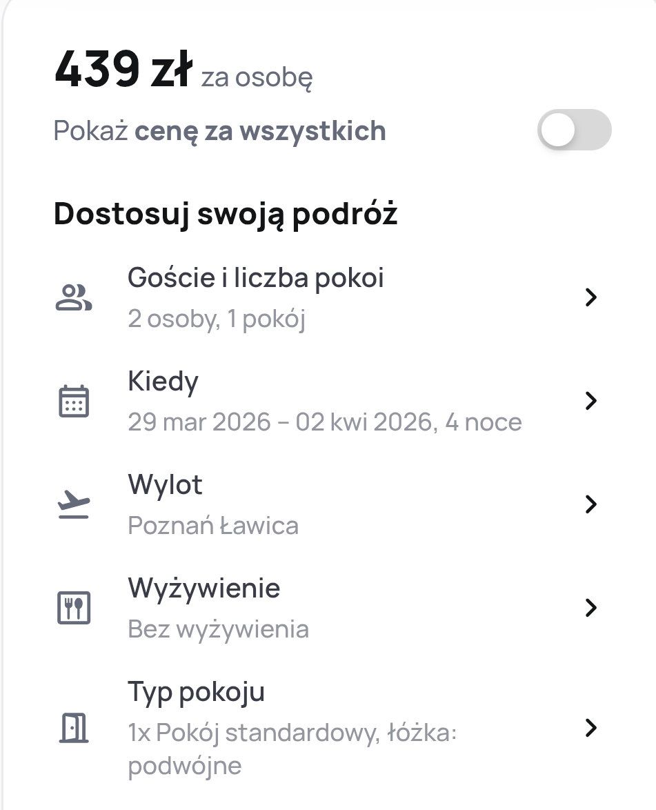 Filtrowanie okazji
