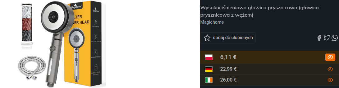 o Wysokociśnieniowa głowica prysznicowa (głowica prysznicowa z wężem) błąd cenowy