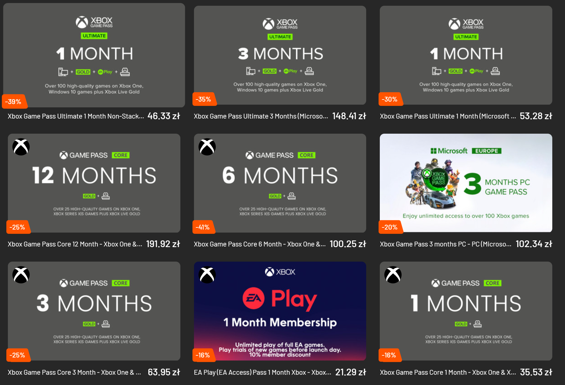 o Xbox Game Pass Ultimate 1 miesiąc i inne dłuższe