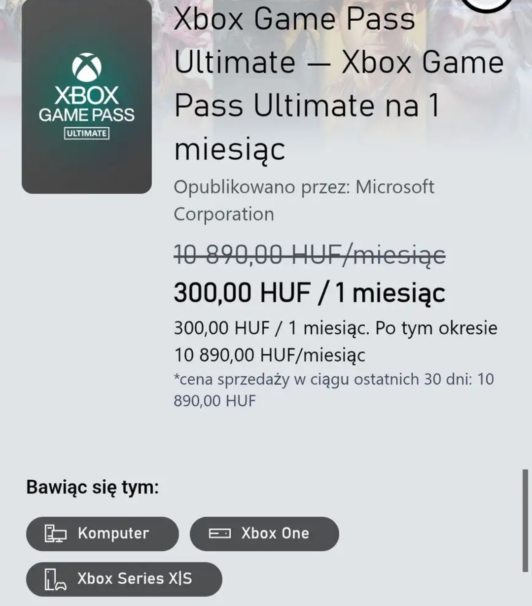 XBOX GAME PASS ULTIMATE - 1 miesiąc - 97%